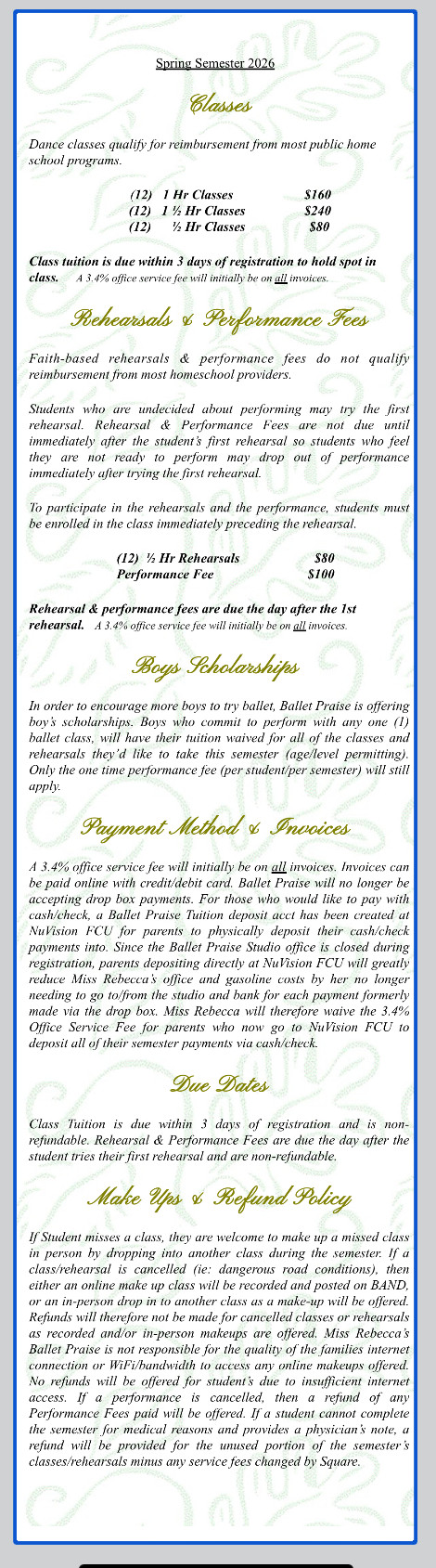 Class/Rehearsal Times